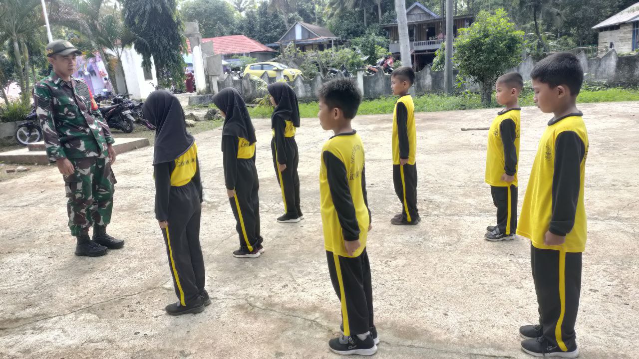 TNI & POLRI Aksi Kompak Babinsa Koramil 1407-03/Cenrana Dan Siswa SD Inpres Watu : Kerja Bakti Perindah Sekolah