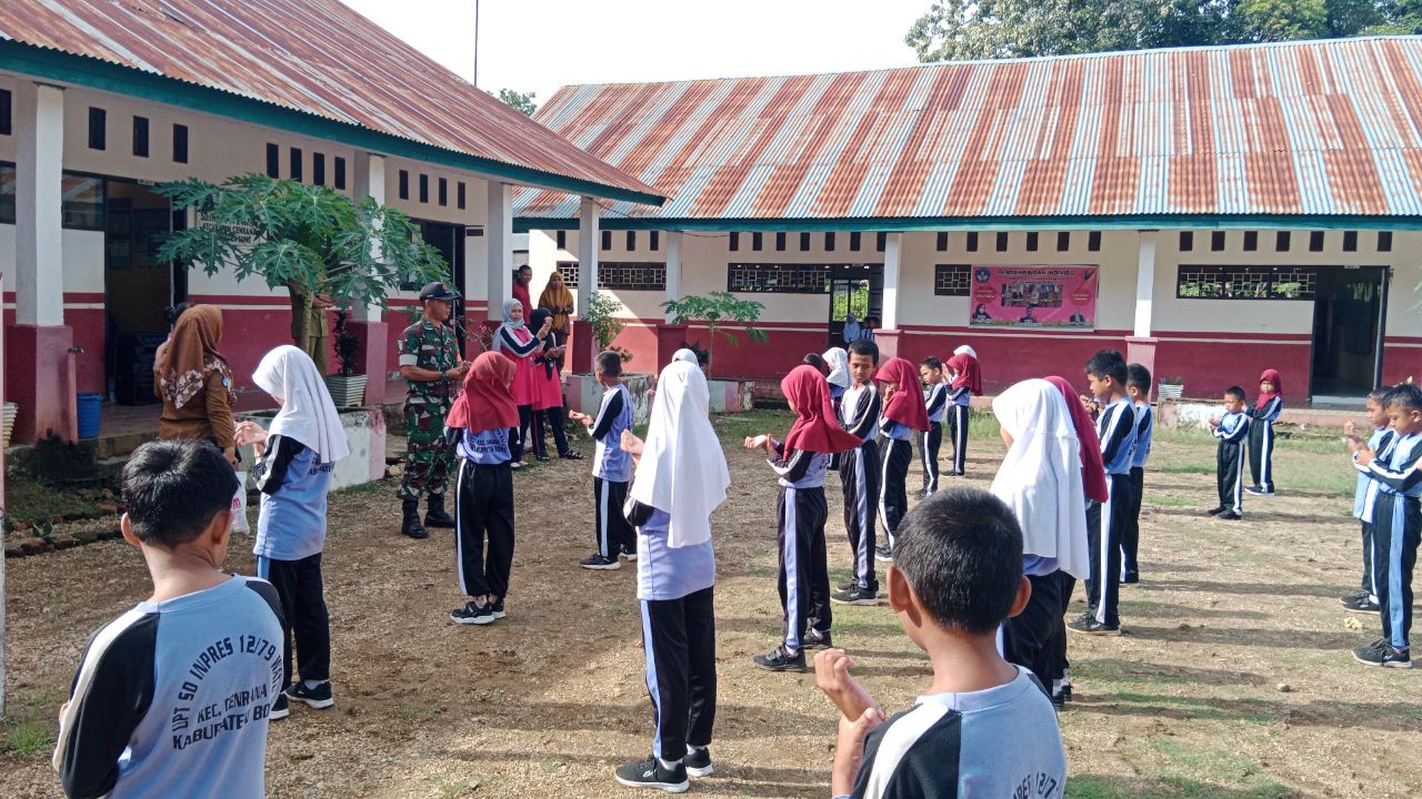 Aksi Kompak Babinsa Koramil 1407-03/Cenrana Dan Siswa SD Inpres Watu : Kerja Bakti Perindah Sekolah