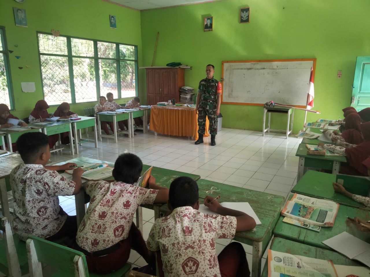 Aksi Kompak Babinsa Koramil 1407-03/Cenrana Dan Siswa SD Inpres Watu : Kerja Bakti Perindah Sekolah