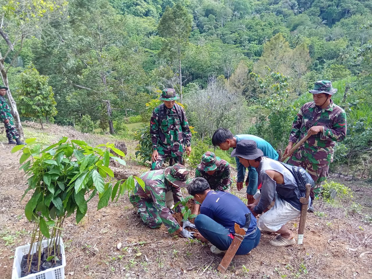 TNI & POLRI Bentuk Dukungan Babinsa Koramil 1407-19/Kahu Dalam Kemandirian Pangan Di Desa Pationgi