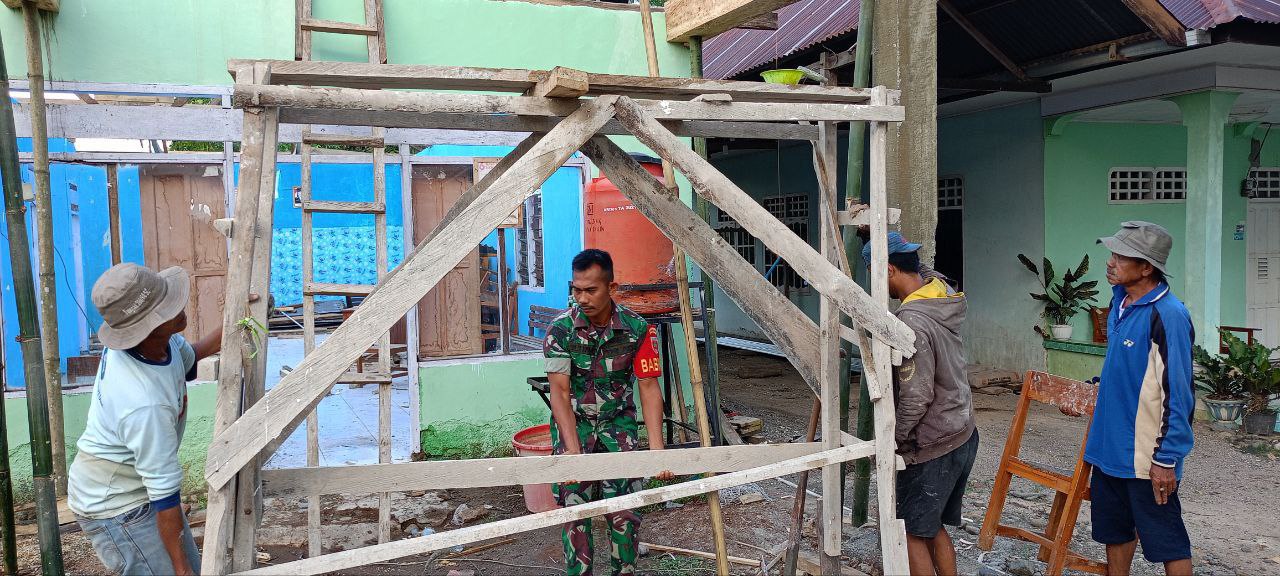 TNI & POLRI Sigap! Babinsa Koramil 1407-20/Bontocani Terjun Langsung Bantu Konstruksi Rumah Warga Di Desa Pattuku