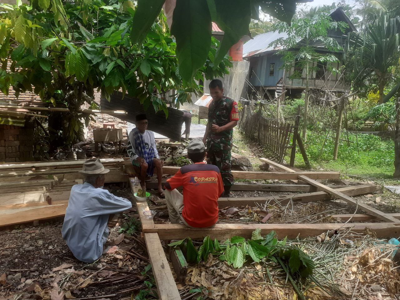 Sigap! Babinsa Koramil 1407-20/Bontocani Terjun Langsung Bantu Konstruksi Rumah Warga Di Desa Pattuku