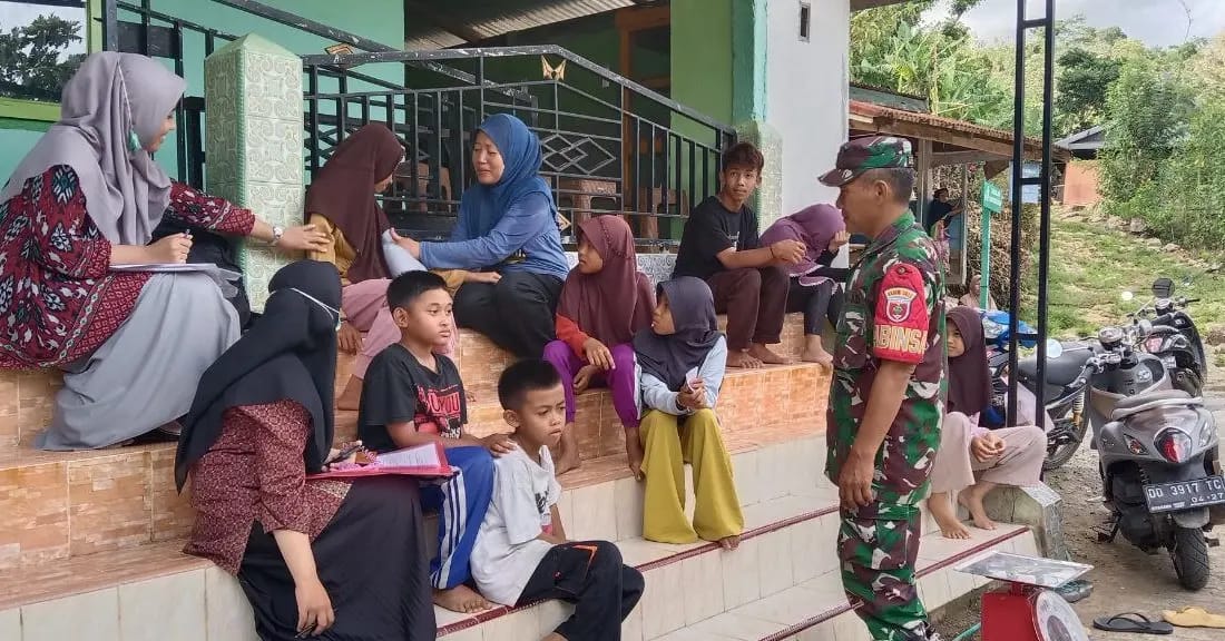 TNI & POLRI Pastikan Layanan Kesehatan Maksimal, Babinsa Koramil 1407-19/Kahu Hadir Di Tengah Giat Posyandu Balita