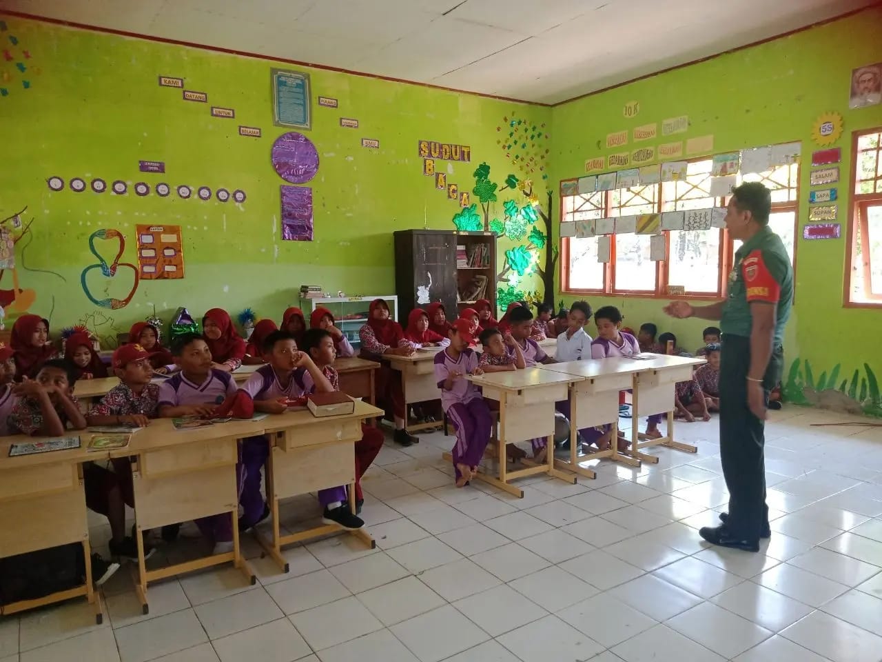 TNI & POLRI Tanamkan Benih Nasionalisme, Babinsa Posramil Patimpeng, Koramil 1407-19/Kahu Beri Materi Wasbang Di SDN 252 Massila