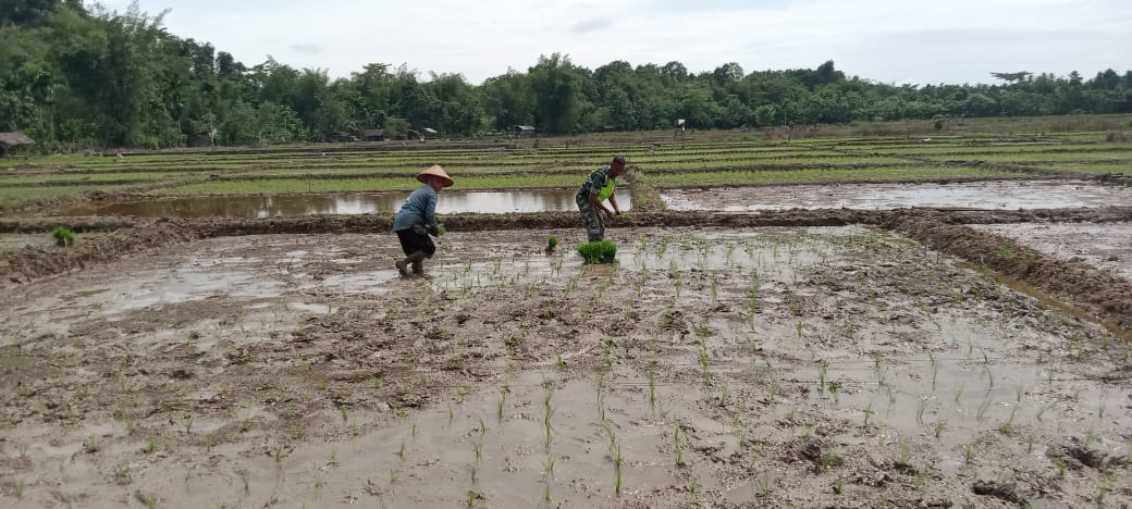 TNI & POLRI Perkuat Ketahanan Pangan, Babinsa Koramil 1407-12/Cina Dampingi Petani Desa Lompu Olah Lahan Padi