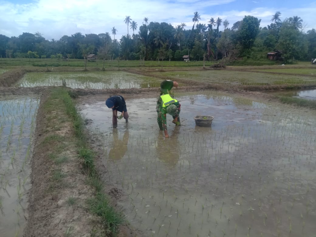 TNI & POLRI Perkuat Ketahanan Pangan, Babinsa Koramil 1407-12/Cina Dampingi Petani Desa Lompu Olah Lahan Padi
