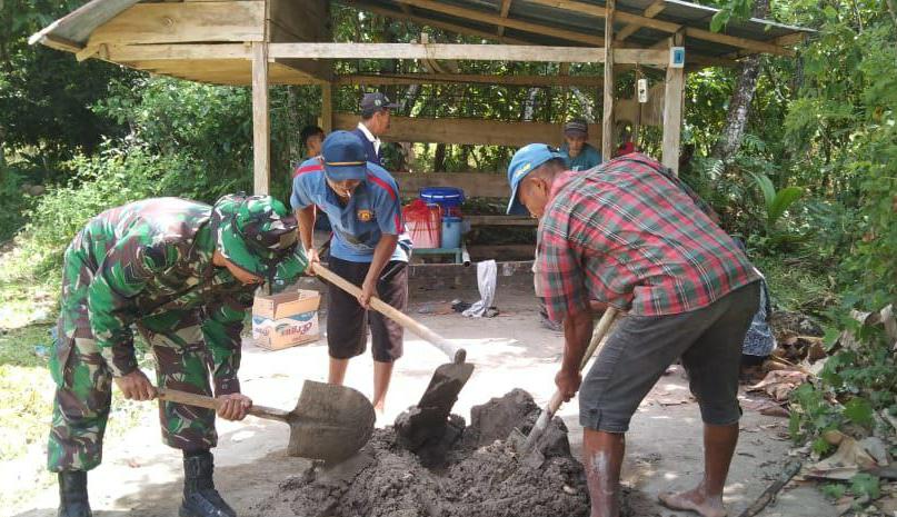 TNI & POLRI Babinsa Koramil 1407-05/Ulaweng-Amali Laksanakan Kerja Bakti Bareng Warga Desa Tocinnong