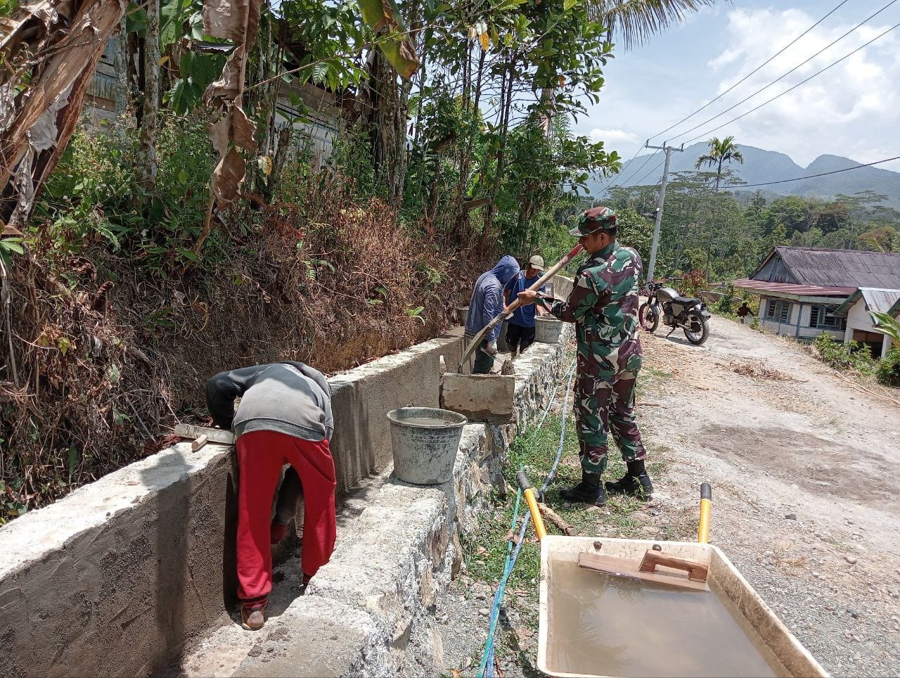 TNI & POLRI Babinsa Koramil 1407-05/Ulaweng-Amali Laksanakan Kerja Bakti Bareng Warga Desa Tocinnong