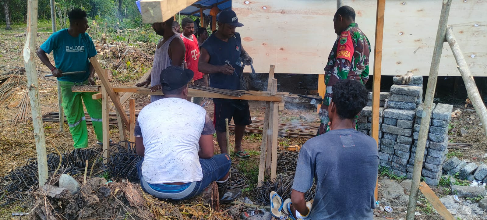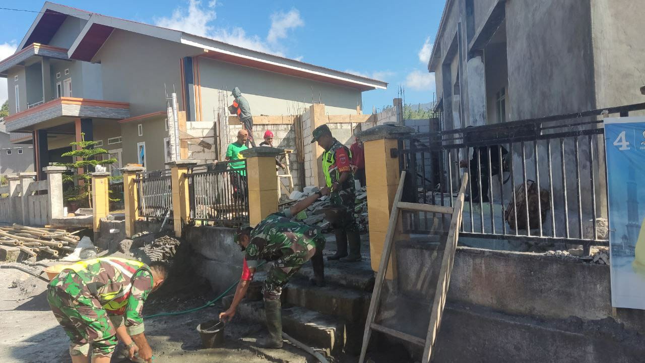 TNI & POLRI Babinsa Koramil 1407-18/Kajuara Bantu Pembangunan Pondasi Rumah Warganya