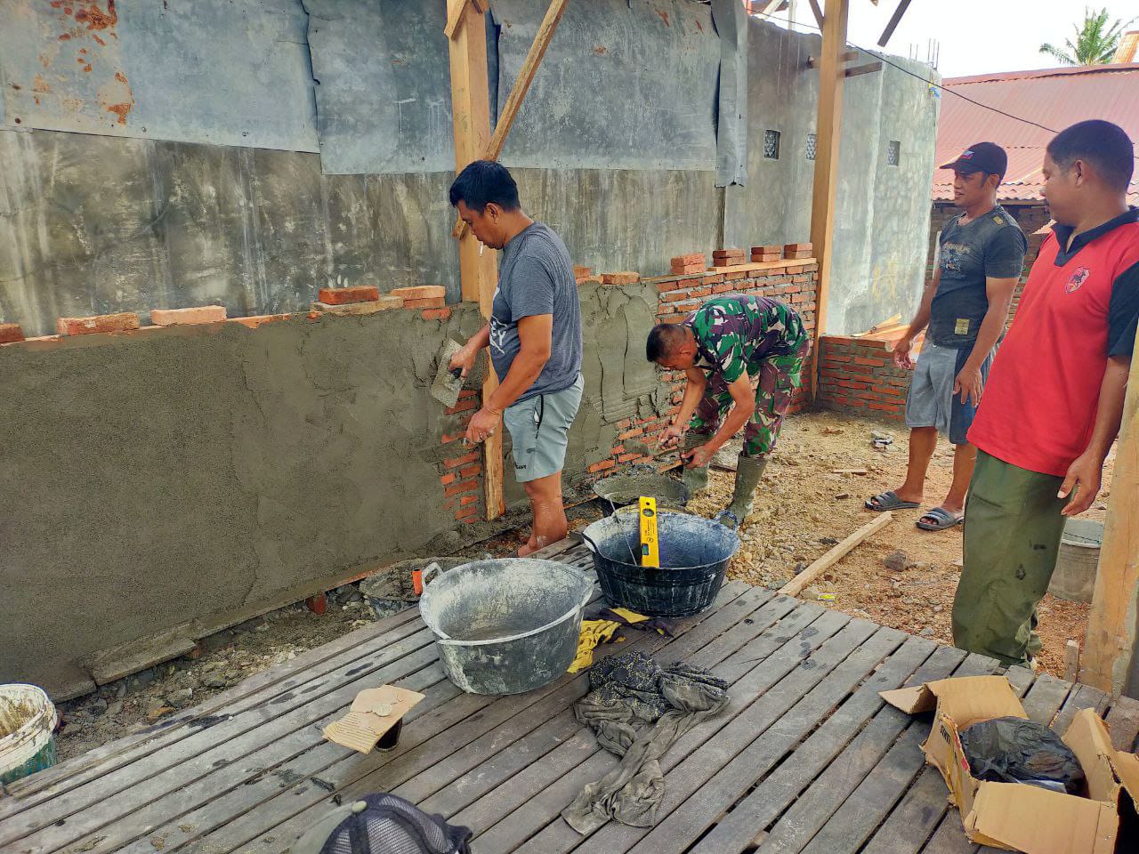 Babinsa Koramil 1407-18/Kajuara Bantu Pembangunan Pondasi Rumah Warganya