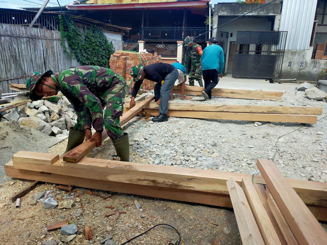 TNI & POLRI Babinsa Koramil 1407-18/Kajuara Bantu Pembangunan Pondasi Rumah Warganya