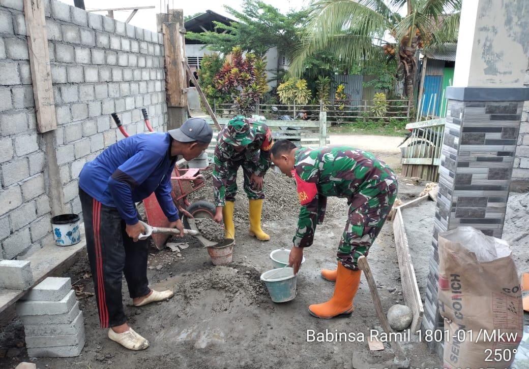 Babinsa Koramil 1407-18/Kajuara Bantu Pembangunan Pondasi Rumah Warganya