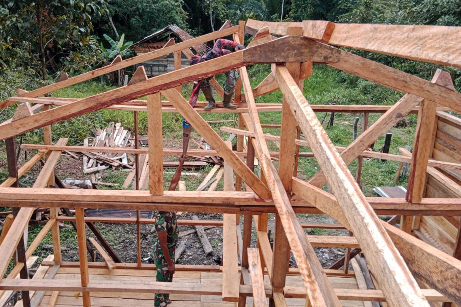 TNI & POLRI Babinsa Koramil 1407-18/Kajuara Bantu Pembangunan Pondasi Rumah Warganya