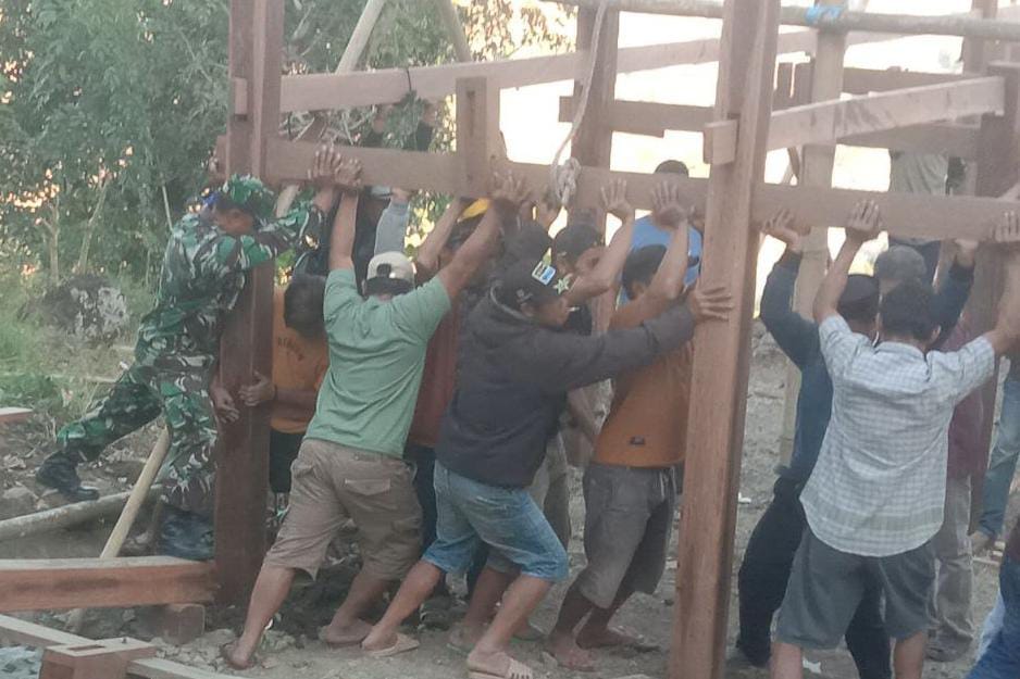 TNI & POLRI Babinsa Koramil 1407-20/Bontocani Tunjukkan Kepedulian, Bantu Warga Pengerjaan Rumah