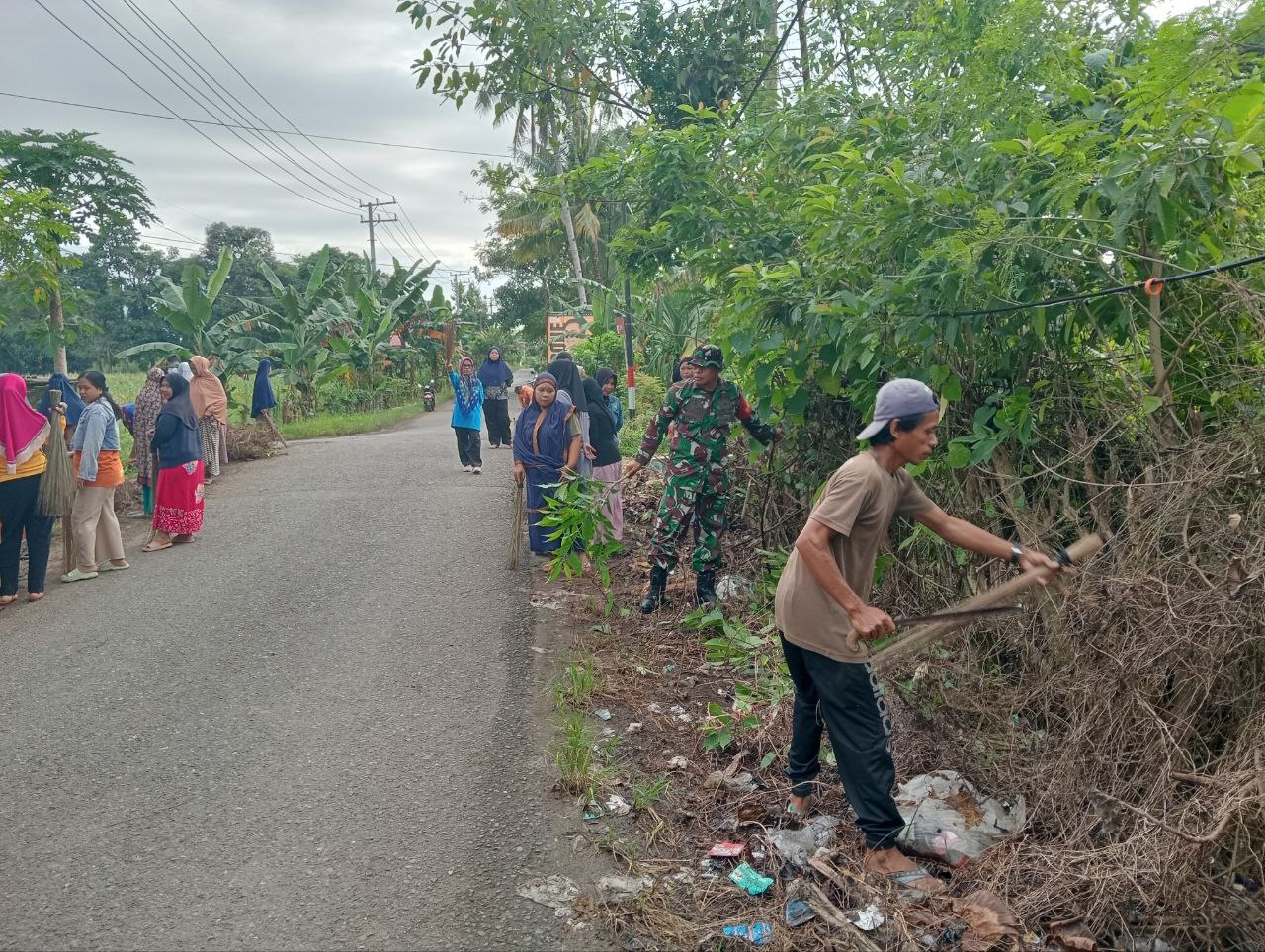 Wujudkan Lingkungan Bersih Dan Sehat, Aksi Gotong Royong Babinsa Koramil 1407-16/Tonra Di Dusun Bulie