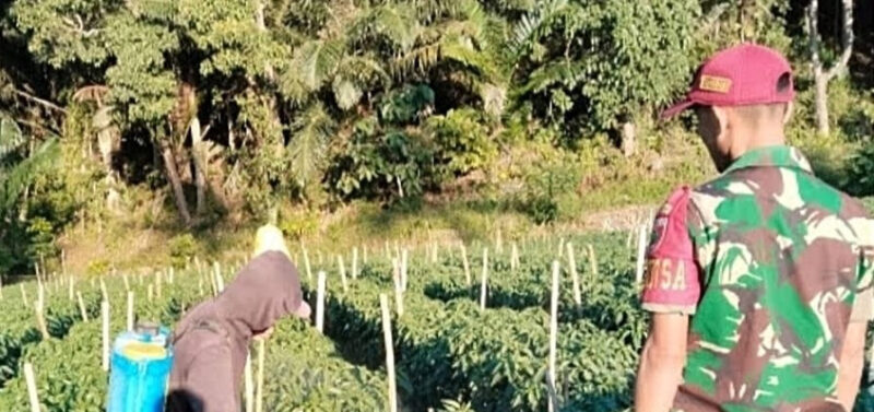 Dalam pelaksanaannya, Sertu Juprisisno turut mendampingi petani cabai mulai dari perawatan tanaman hingga memberikan motivasi agar para petani tetap semangat dalam mengelola lahan pertanian.