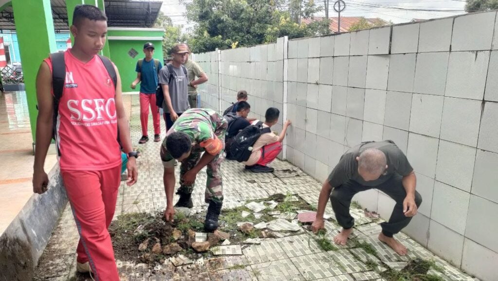 Dengan mengajak masyarakat untuk melestarikan Budaya Gotong royong yakni membersihkan salah satu rumah ibadah. Aksi kebersamaan ini dilaksanakan di pekarangan Masjid, terlihat Personel Koramil dibantu warga dan pelajar bersama-sama gotong royong membersihkan halaman Masjid, mulai dari mencabut rumput dan membuang sampah-sampah, tempat wudhu sampai pada bagian dalam masjid.