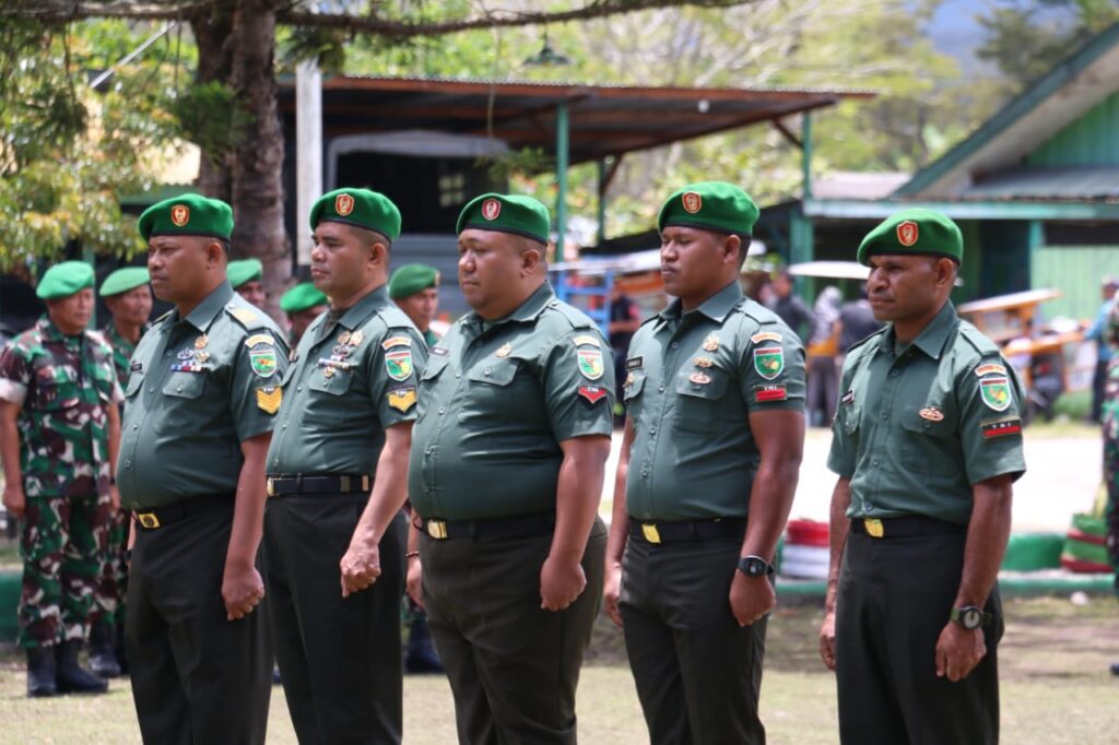 Wamena – Dandim 1702/JWY Letkol Cpn Athenius Murip, S.H., M.H., memimpin langsung Upacara Korp Raport kenaikan pangkat satu tingkat lebih tinggi Periode 01 Oktober 2023 yang digelar di Lapangan Apel Makodim berlokasi di Jln. Yos Sudarso, Distrik Wamena, Kab. Jayawijaya, Prov. Papua Pegunungan, Senin (02/10/2023).
