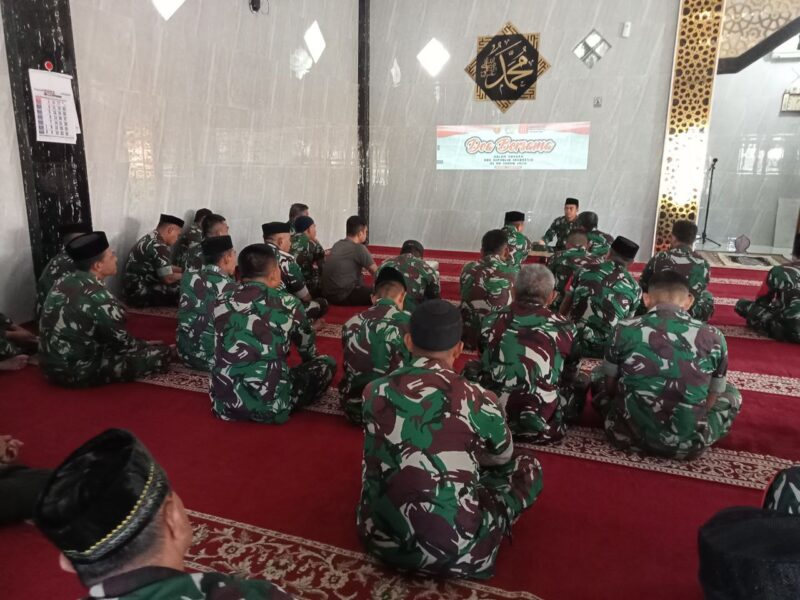 BONE – Dandim 1407/Bone Letkol Inf. Laode Muhammad Idrus hadiri doa bersama lintas agama yang digelar serentak jajaran Kodam XIV/Hsn dalam rangka menyambut HUT ke 80 Kemerdekaan Republik Indonesia, bertempat di Masjid Manunggal Kodim 1407/Bone, Jl. Lapatau, Kec. Tanete Riattang, Kab. Bone. Jumat (15/08/25).