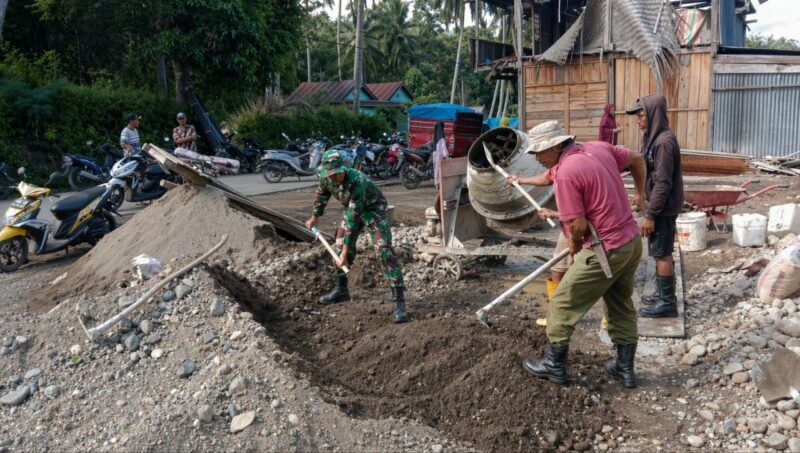 Dalam proses pembangunan tersebut, Sertu Edy Jaya turut membantu pekerjaan fisik bersama warga, mulai dari pengangkutan material hingga pengerjaan bagian bangunan.