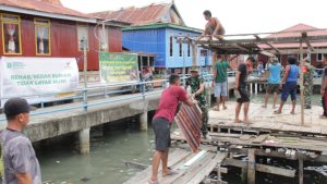 “Selain itu medan juga yang cukup menantang dimana tempat kita sekarang berada di pesisir pantai sehingga kita berpacu ke pasang surutnya air laut, bekerja dengan penuh hati-hati di hadapkan dengan kondisi rumah kayunya yang sudah rapuh” Pungkas Serma Ali.