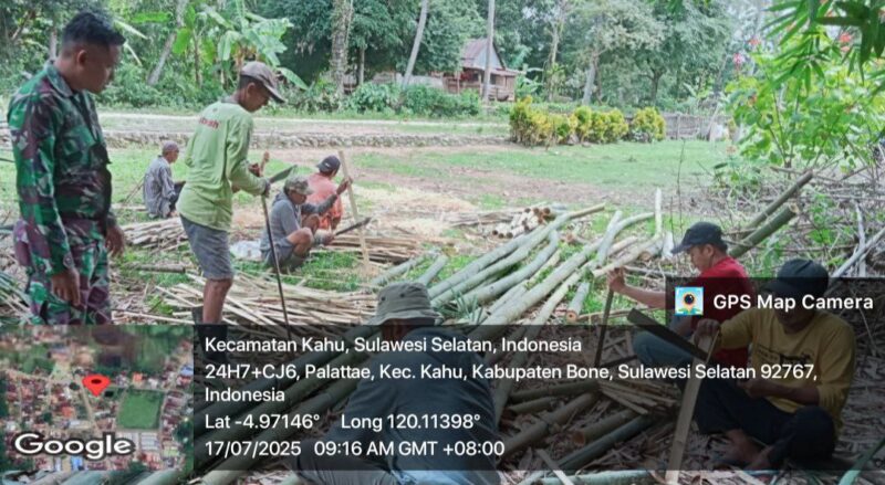 Bone – Dalam rangka memeriahkan Hari Ulang Tahun ke-80 Republik Indonesia, Babinsa Koramil 19/Kahu Kodim 1407/Bone, Serda Kamaliddin, bersama warga Desa Labuaja, Kecamatan Kahu, Kabupaten Bone, melaksanakan kegiatan kerja bakti, Kamis (17/07/25).