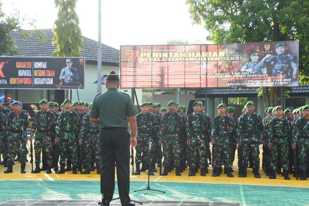 Sampaikan Arahan Danrem 141/Tp, Kasi Ops Kasrem 141/Tp beri pengarahan Kepada Seluruh Personel Korem 141/Tp