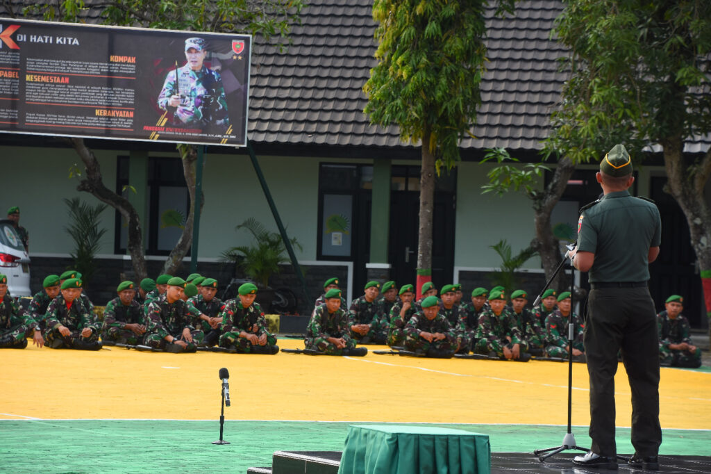 “Pedomani yang menjadi penekanan Danrem 141/Tp, hindari pelanggan sekecil apapun, apabila ingin melakukan sesuatu pelanggaran, ingat keluarga dan Dinas, selalu implementasikan dan pedomani Saptamarga, Sumpah Prajurit dan 8 Wajib TNI, perintah harian Kasad serta implementasikan 6 K selalu Dihati dalam pelaksanaan tugas sehari-hari” Ucap Kasrem 141/Tp.(Penrem 141/Tp)