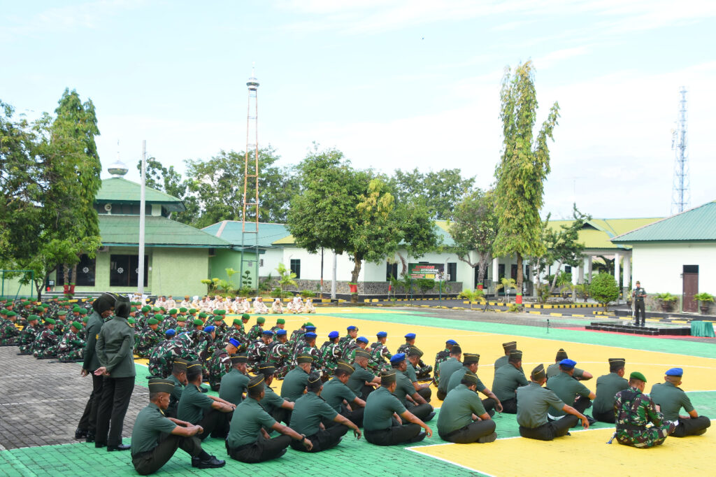 Watampone – Kasrem 141/Tp Kolonel Inf Arif Suryandaru mewakili Danrem berikan Jamdan Kepada Seluruh Personel Korem 141/Tp bertempat di lapangan Apel Makorem 141/Toddopuli