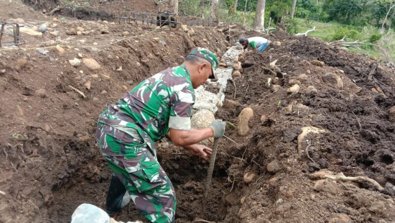 Bone – Babinsa Koramil 1407-20/Bontocani Serma Laode Fajeri turun langsung membantu warga dalam pengerjaan pembangunan rumah di Desa Pattuku, Kec. Bontocani, Kab. Bone. Kamis (22/01/26).