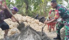 BONE – Guna terciptanya sinergitas TNI bersama rakyat, Babinsa Koramil 1407-10/Ponre Serda Darwis membantu warga binaan bangun rumah yang berlokasi di Desa Tellu Boccoe, Kec. Ponre Kab. Bone.