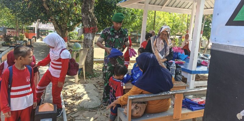 BONE – Babinsa Koramil 1407-02/Dua Boccoe Serda Mustaring melaksanakan pendampingan pendistribusian Makan Bergizi Gratis (MBG) di SD Inpres 12/79, Desa Pakkasalo, Kec. Dua Boccoe, Kab. Bone. Kamis (12/03/26).