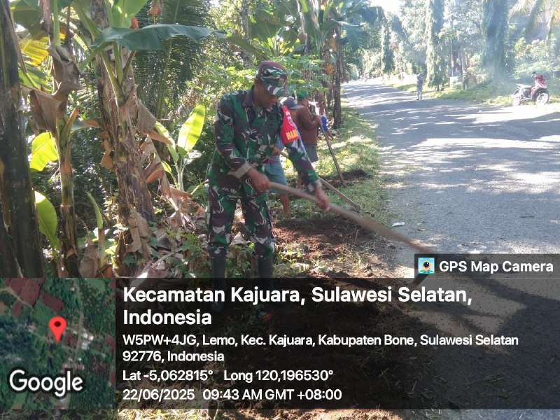 BONE – Serka Andi Bahri Babinsa Koramil 1407-20/Bontocani, bersama warga masyarakat melaksanakan gotong royong bertempat di Lingkungan Tanjung, Kelurahan Kahu, Kecamatan Bontocani, Kabupaten Bone,…