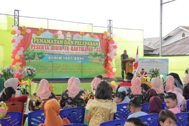 Bone — Komandan Kodim (Dandim) 1407/Bone, Letkol Inf. Laode Muhammad Idrus, yang diwakili oleh Pasi Pers Lettu Inf. Usman, menghadiri acara penamatan siswa-siswi TK…