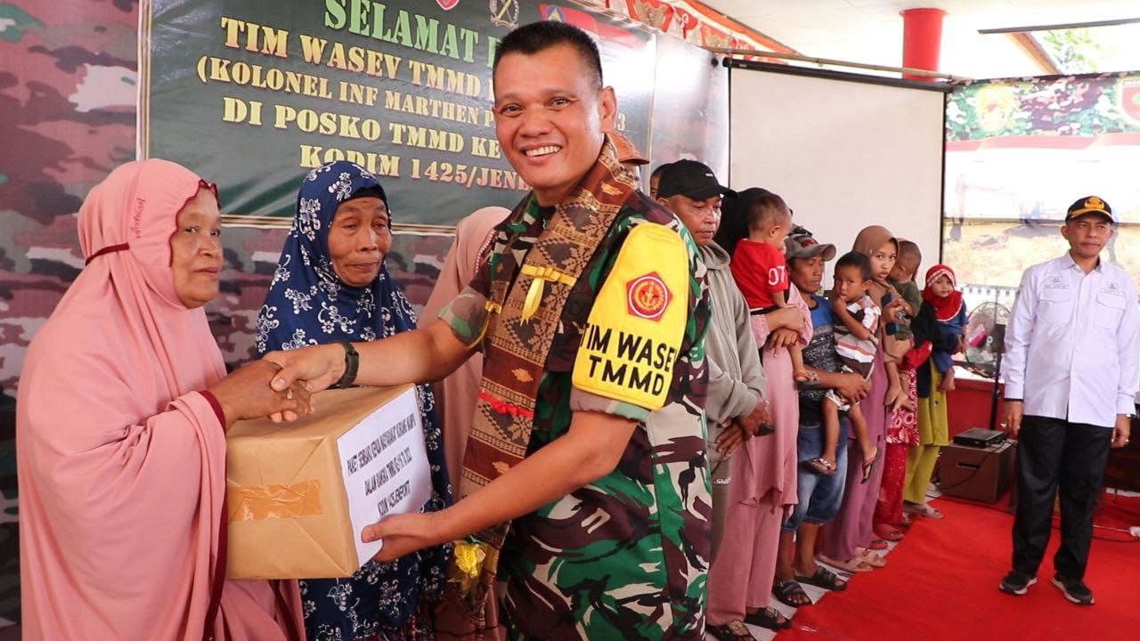 JENEPONTO – Tim Pengawas dan Evaluasi (Wasev) TNI-AD, Kolonel Inf Marthen Pasunda, S.Sos., M.H., (Staf IRUT -1 /REN ITTER TUM ITJENAD), didampingi Dansatgas TMMD…