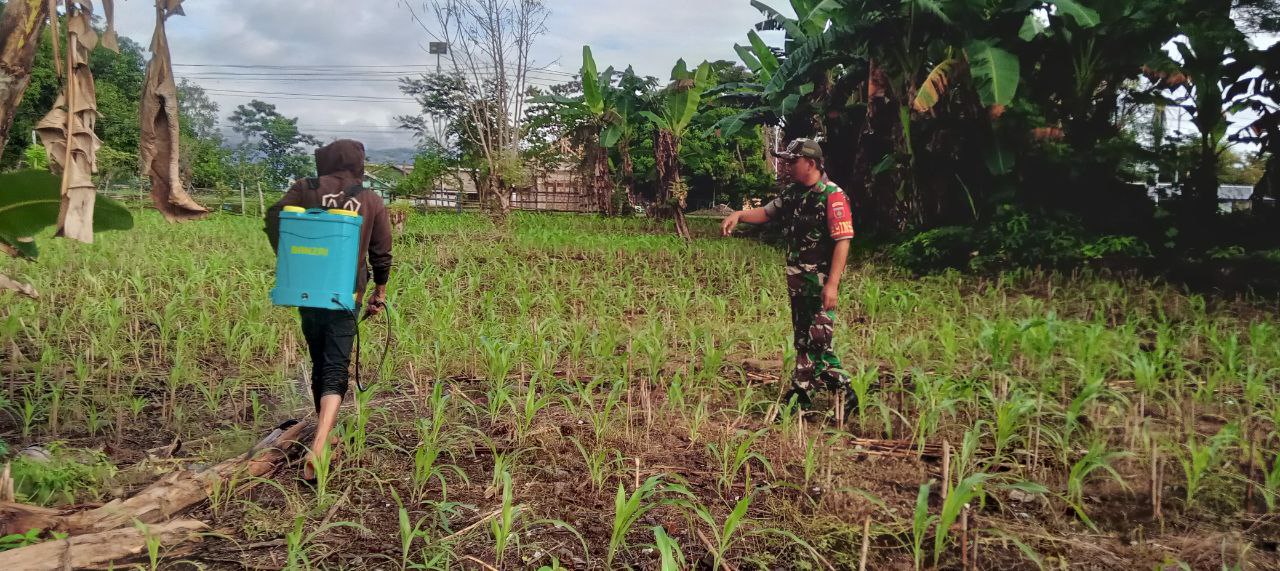 BONE – Sertu Basri Kole Babinsa Koramil 14/Libureng Kodim 1407/Bone melaksanakan pendampingan membantu merawat tanaman jagung di lahan milik warga di Kel. Tanabatue, Kec….