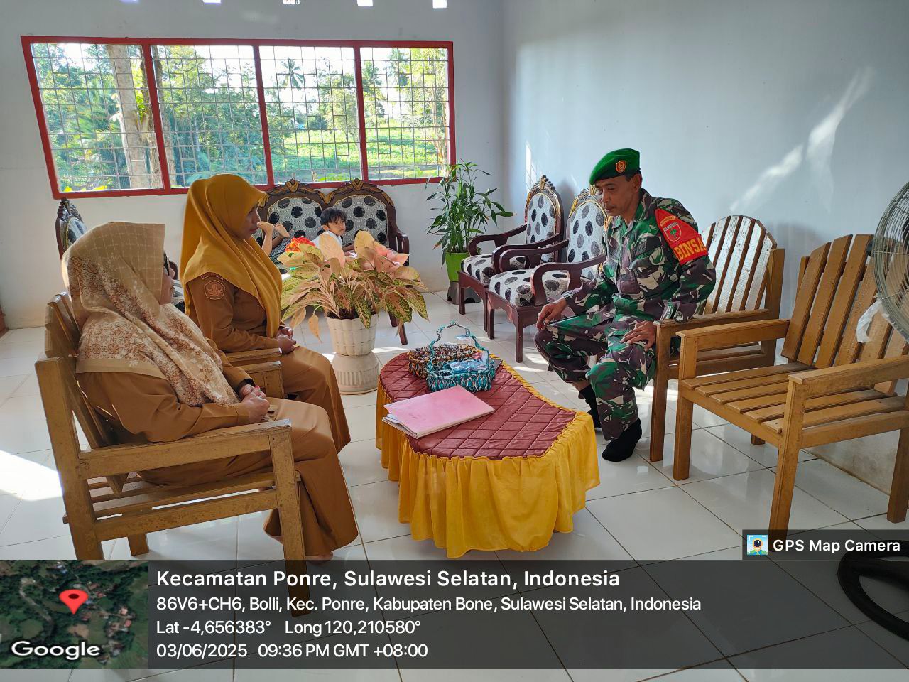 BONE – Babinsa Koramil 10/Ponre Kodim 1407/Bone Sertu Kasman melaksanakan Komunikasi Sosial (Komsos) dengan guru SD Negeri 193 Bolli yang berlokasi di Dusun Lawari,…
