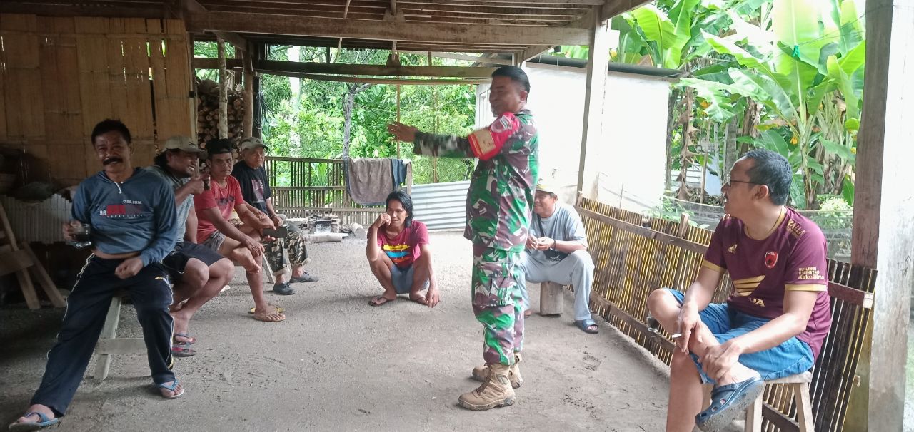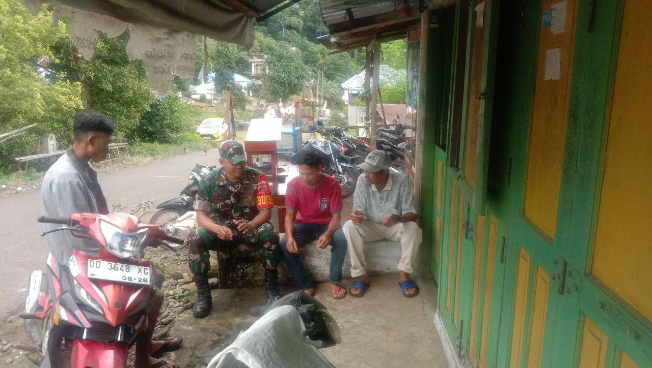BONE – Keakraban dan kebersamaan, Babinsa Koramil 08/Lamuru Kodim 1407/Bone Serda Sukardi dalam melaksanakan Komunikasi Sosial (Komsos) dengan warga binaannya di Desa Poleonro, Kec….