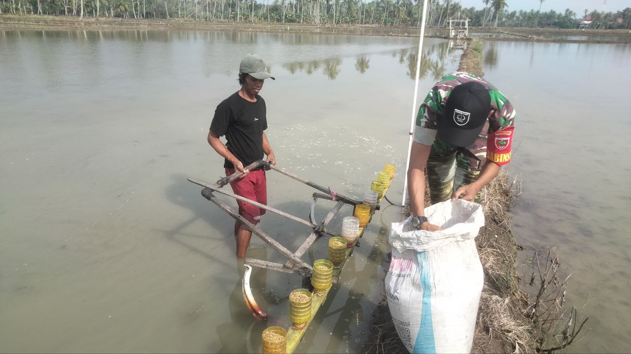 BONE – Babinsa Koramil 1407-03/ Cenrana Sertu Fadli Rangga melaksanakan hanpangan membantu Bapak iwan menanam padi di lahan seluas -+ 1 Ha , yang…