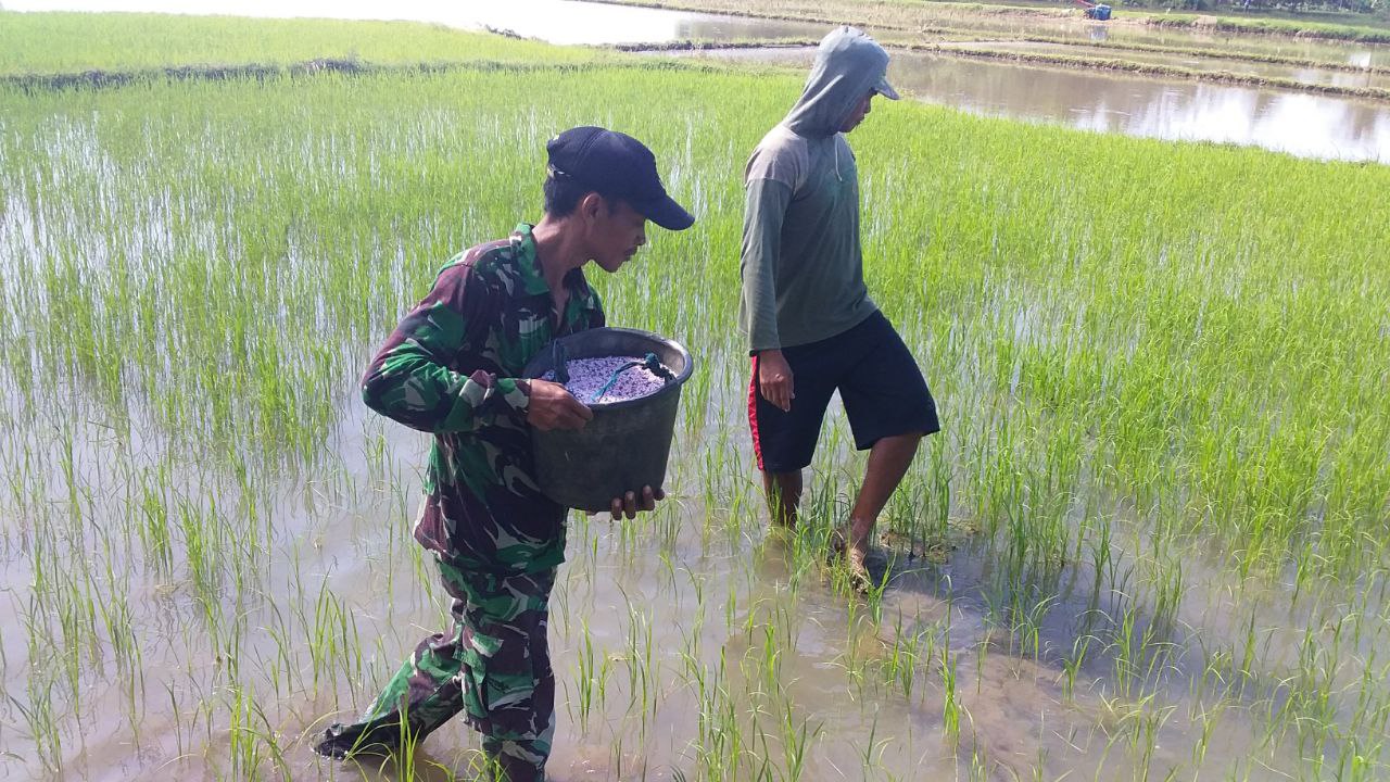 Bone – Babinsa Koramil 1407-06/Awangpone, Serka Samsuddin, turun langsung ke sawah membantu proses pemupukan tanaman padi milik salah satu anggota Kelompok Tani Siparappe di…