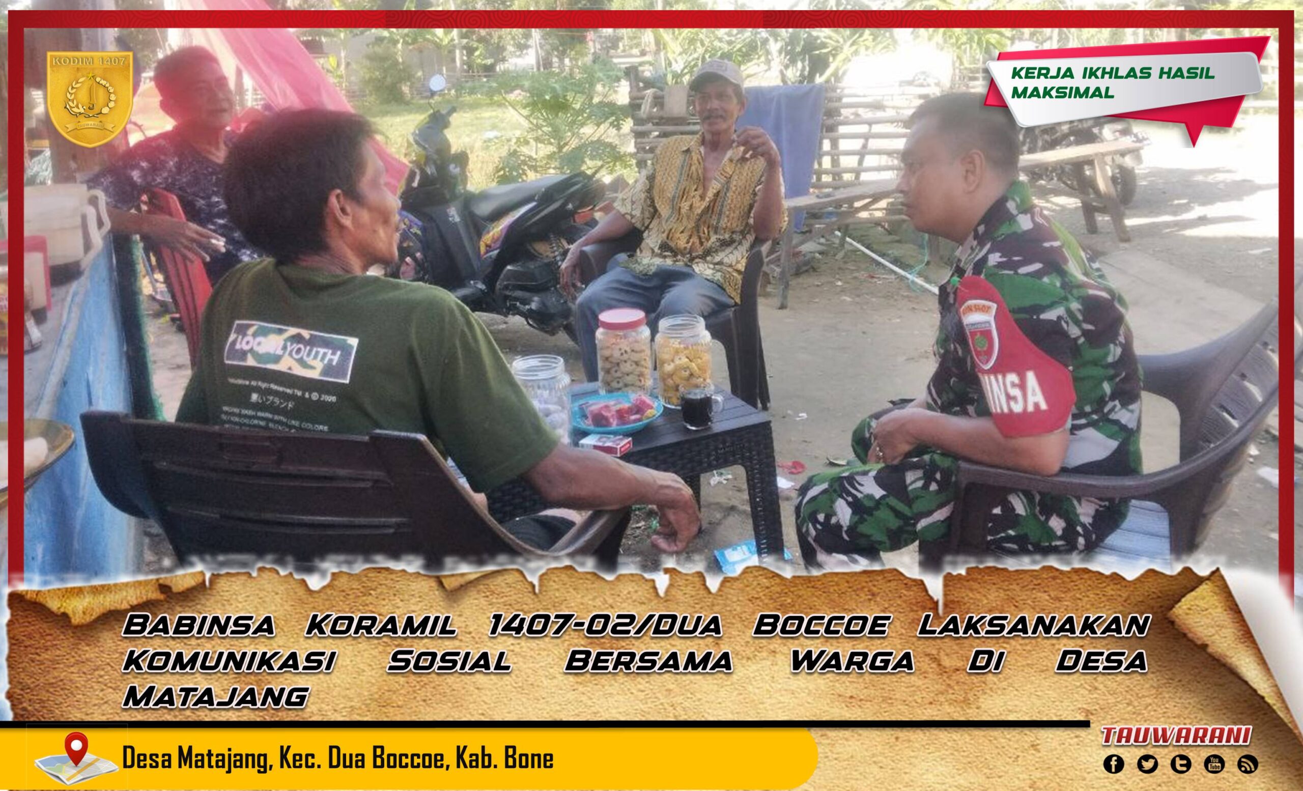 Bone – Babinsa Koramil 1407-02/Dua Boccoe, Serda Darusman, melaksanakan Komunikasi Sosial (Komsos) bersama warga binaan di salah satu rumah warga di Desa Matajang, Kec….