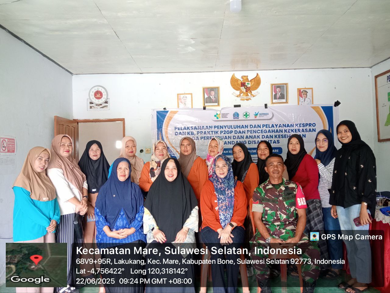 BONE – Bintara Pembina Desa (Babinsa) Koramil 15/ Mare Kodim 1407/ Bone hadiri kegiatan Penyuluhan dan Pelayanan Kespro, KB, P2GP, Pencegahan Kekerasan Perempuan dan…