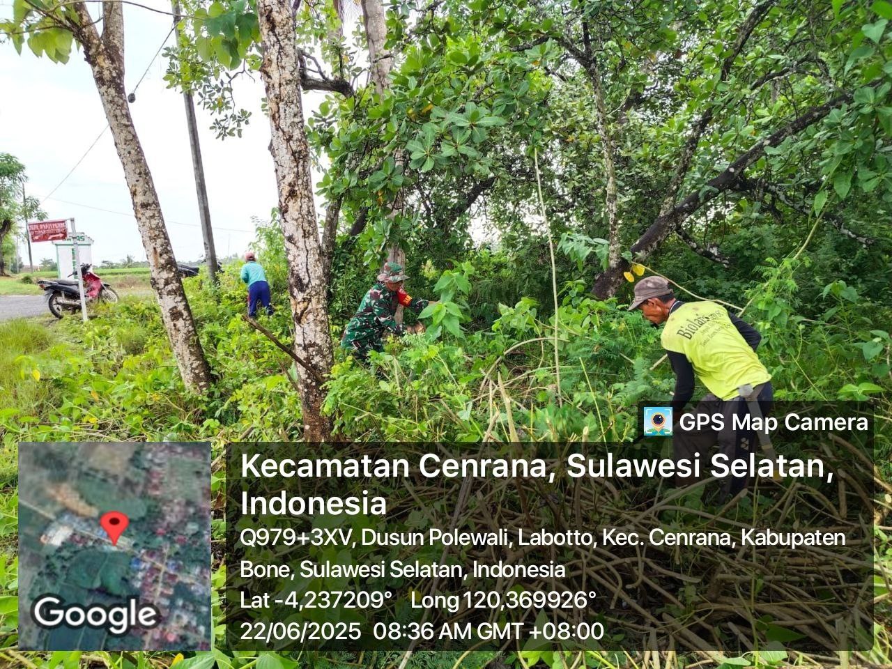 BONE – Babinsa Sertu Syafaruddin dari Koramil 1407-03/ Cenrana kegiatan karya bakti bersama warga setempat dengan membersihkan saluran air dan ranting pohon di wilayah…