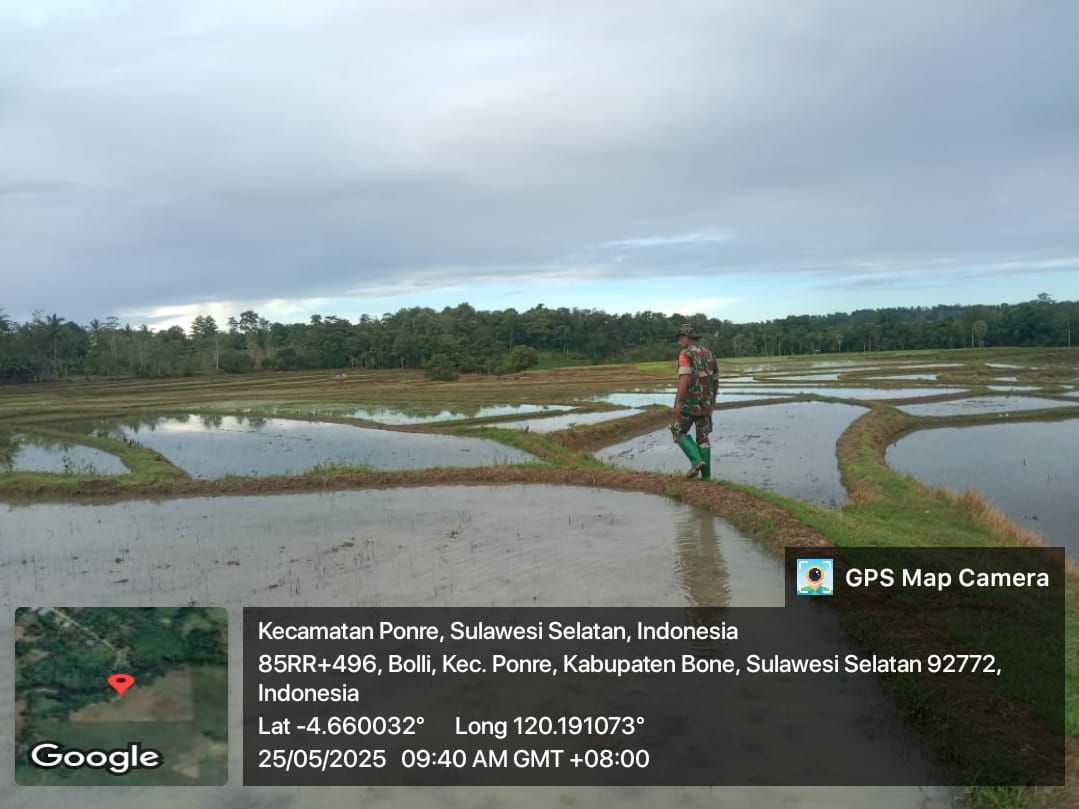 BONE- Untuk mendukung ketahanan pangan Babinsa Koramil 1407-10/Ponre Sertu Kasman Pengecekan kesiapan musim tanam Lahan Sawah tadah hujan yang akan di tanami padi yang…