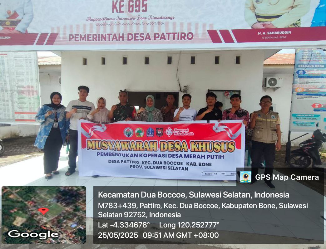 BONE – Danramil 1407-02/Dua Boccoe Kapten Arh Ruslan menghadiri rapat Musyawarah Desa Khusus (Musdesus) terkait pendirian Koperasi Merah Putih yang diselenggarakan di Desa Pattiro,…