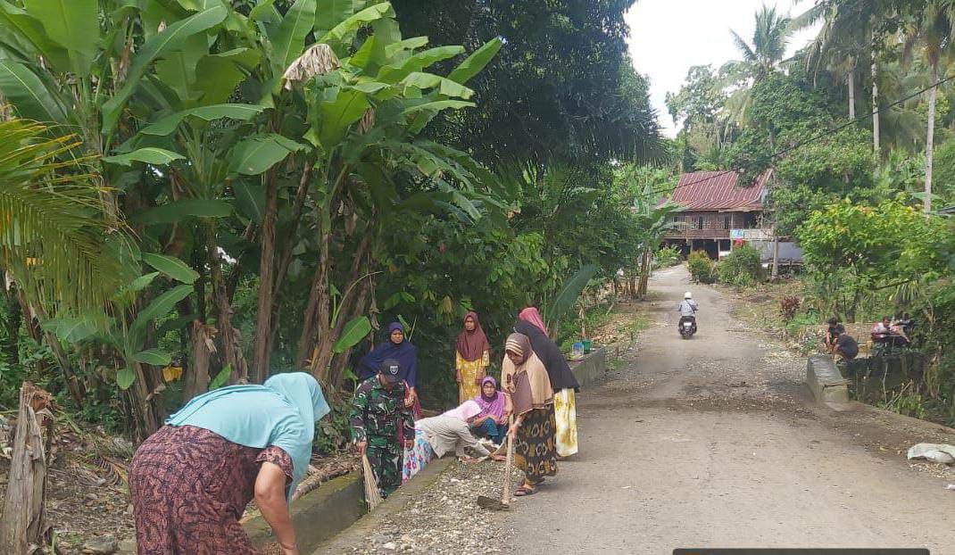 BONE – Kopda Suhartono Babinsa Koramil 14/Libureng Kodim 1407/Bone bersama warga masyarakat melaksanakan gotong royong membersihkan jalan tani dan saluran air di Desa Tompo…