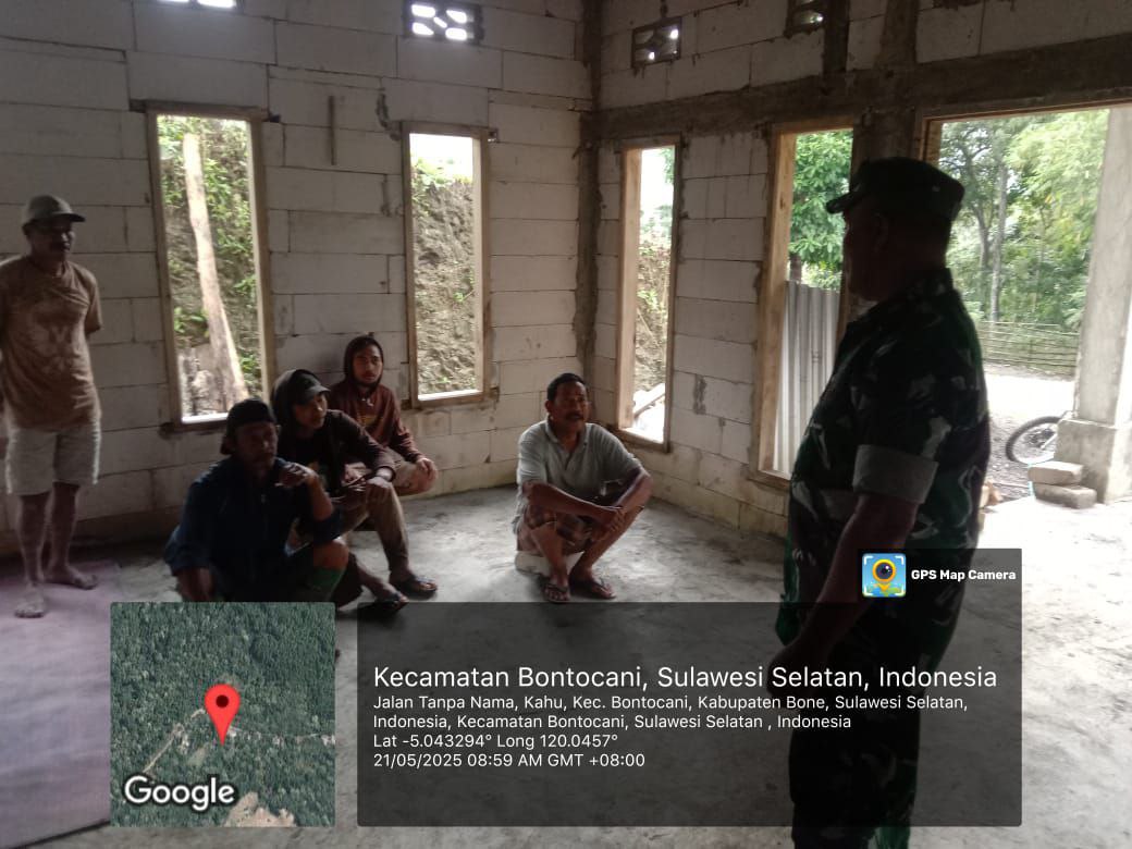 BONE – Babinsa Kodim 1407/Bone Koramil 20/Bontocani Serka Laode Fajeri melaksanakan Komunikasi Sosial (Komsos) dengan Warga binaannya di Kelurahan Kahu, Kecamatan Bontocani, Kabupaten Bone….