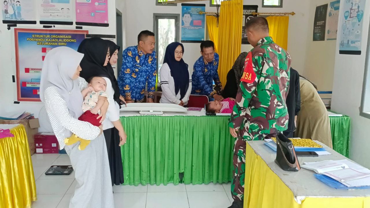 BONE – Sertu Sainuddin Babinsa Koramil 1407-07/Tanete Riattang melaksanakan pendampingan pelayanan posyandu bersama Bidan Kelurahan di Posyandu Kajolaliddong, Lingkungan Baru, Kel. Biru, Kec. Tanete…
