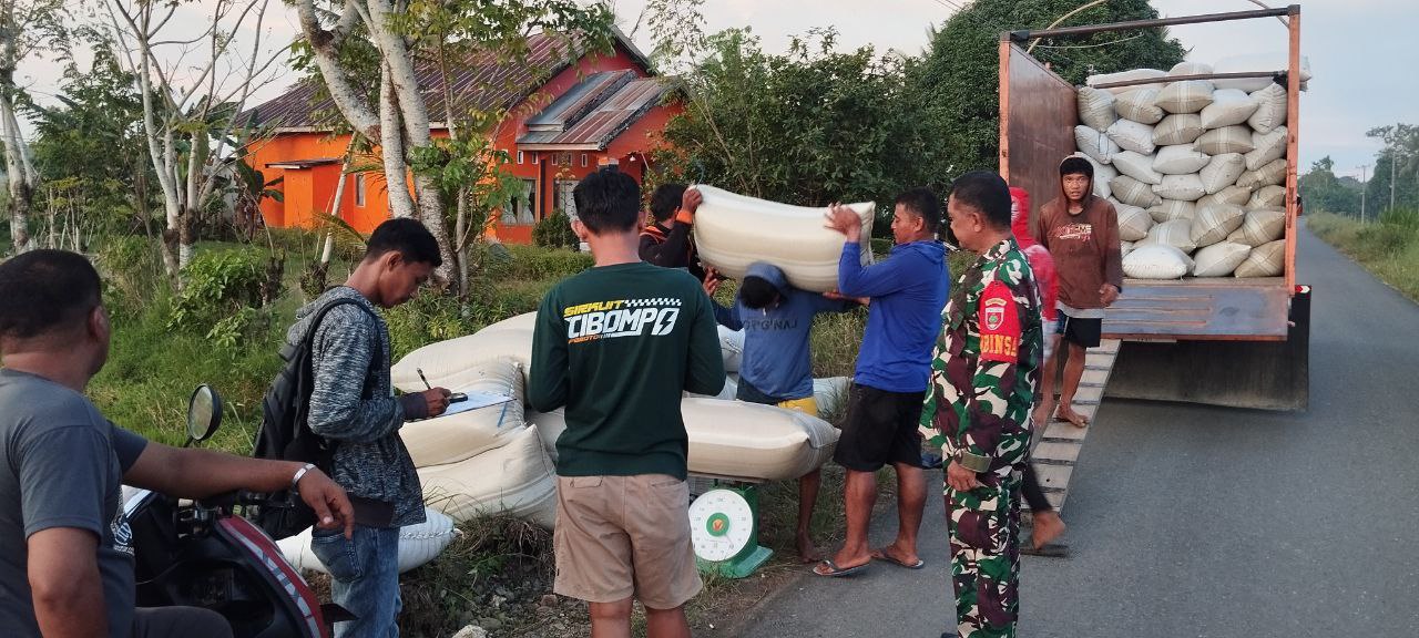 BONE – Serma Usman Jaga Babinsa Koramil 1407-11/Barebbo mendampingi bulog dalam proses penyergapan gabah milik salah satu warga dari kelompok tani Padaelo yang berlokasi…