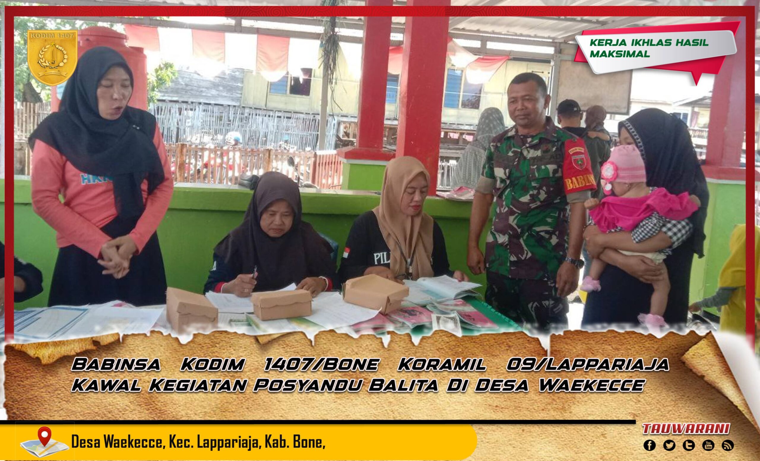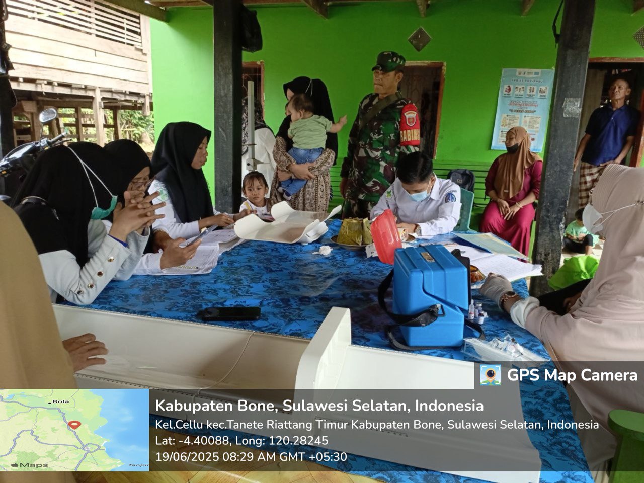Bone – Babinsa Koramil 1407-09/Lappariaja, Sertu Lukman, melaksanakan pengawasan dan pendampingan Posyandu balita yang berlangsung di Desa Waekecce, Kec. Lappariaja, Kab. Bone, Jumat (20/06/25)….
